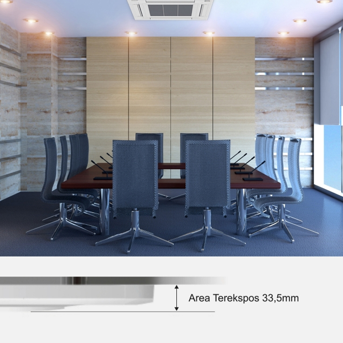 Compact Design Dengan ketebalan hanya 33,5 mm dari plafon, unit ini menyatu secara alami dengan berbagai interior, baik itu kantor, restoran, maupun ruang komersial lainnya.